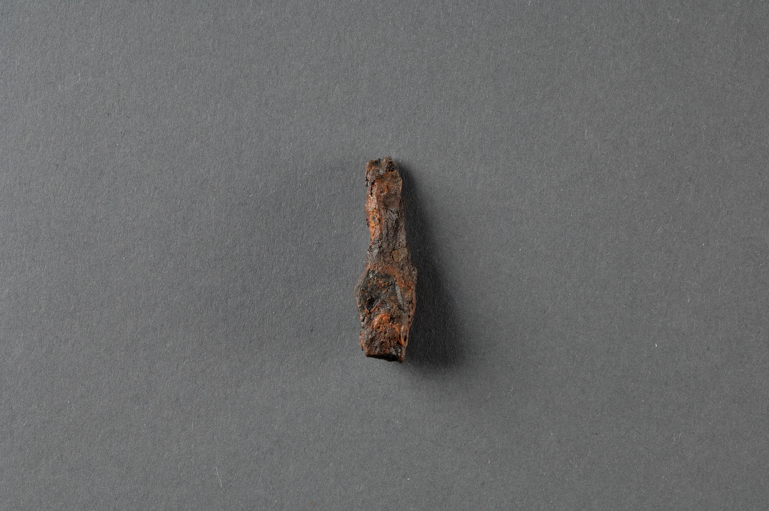 From the mass graves, the Cross Meadow, Visby parish, Gotland, 1250-1361 A.D. In the mass graves two long spikes and four smaller spikes were found. These have become detached from the weapon and remained in the dead bodies. The smaller spikes were probably attached to maces. The longer spikes were placed at the top of the mace. The smaller spikes were spread out over the head of the mace. SHM 19525:OƄ19