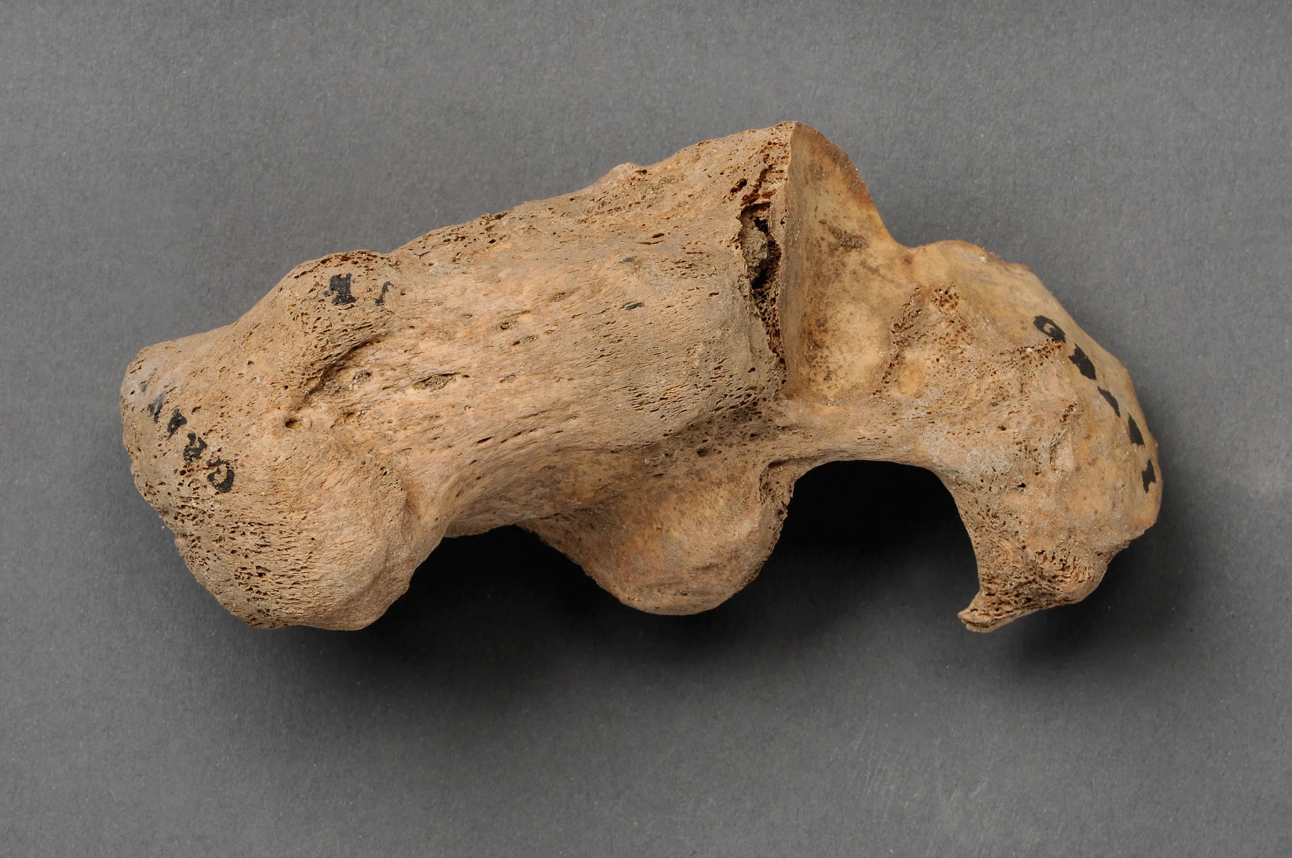 Caption Heel bone, navicular bone, right Heel bone and navicular bone which have fused. Second shelf. SHM 17530