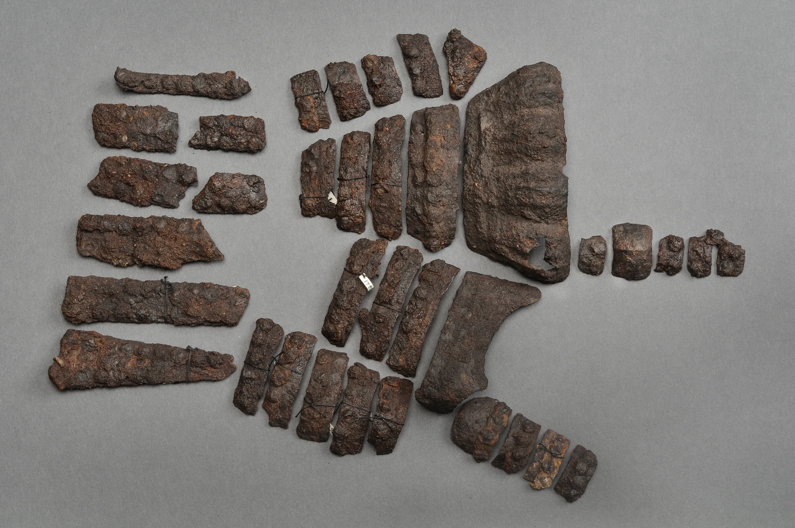 Bildtext Pansarhandske, järn Från massgravarna, Korsbetningen, Visby socken, Gotland, 1250-1361 e. Kr. SHM 17530:A:5