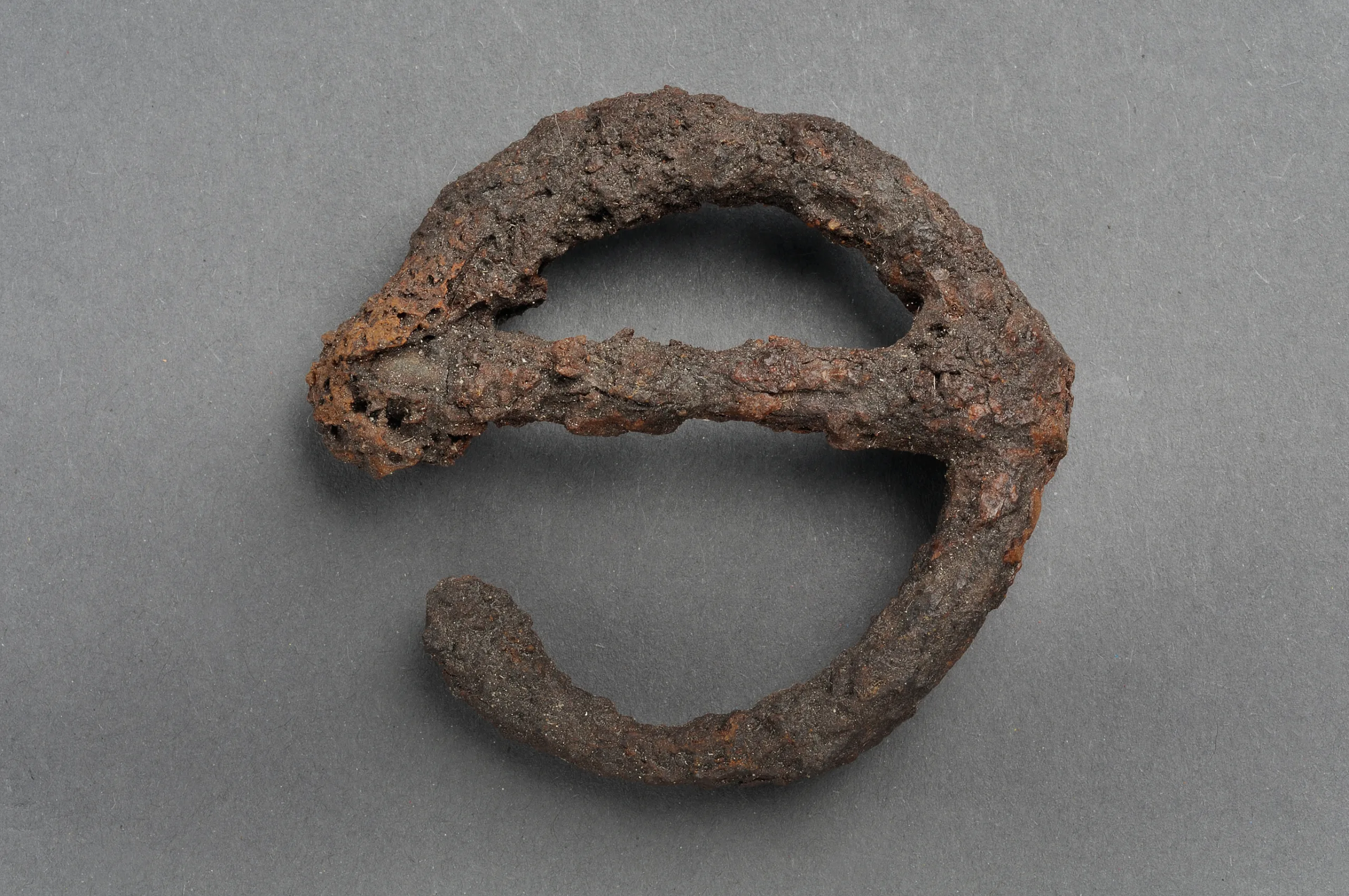 Caption Belt buckle, iron From the mass graves, the Cross Meadow, Visby parish, Gotland, 1250-1361 A.D. SHM 19525:Os1:2,