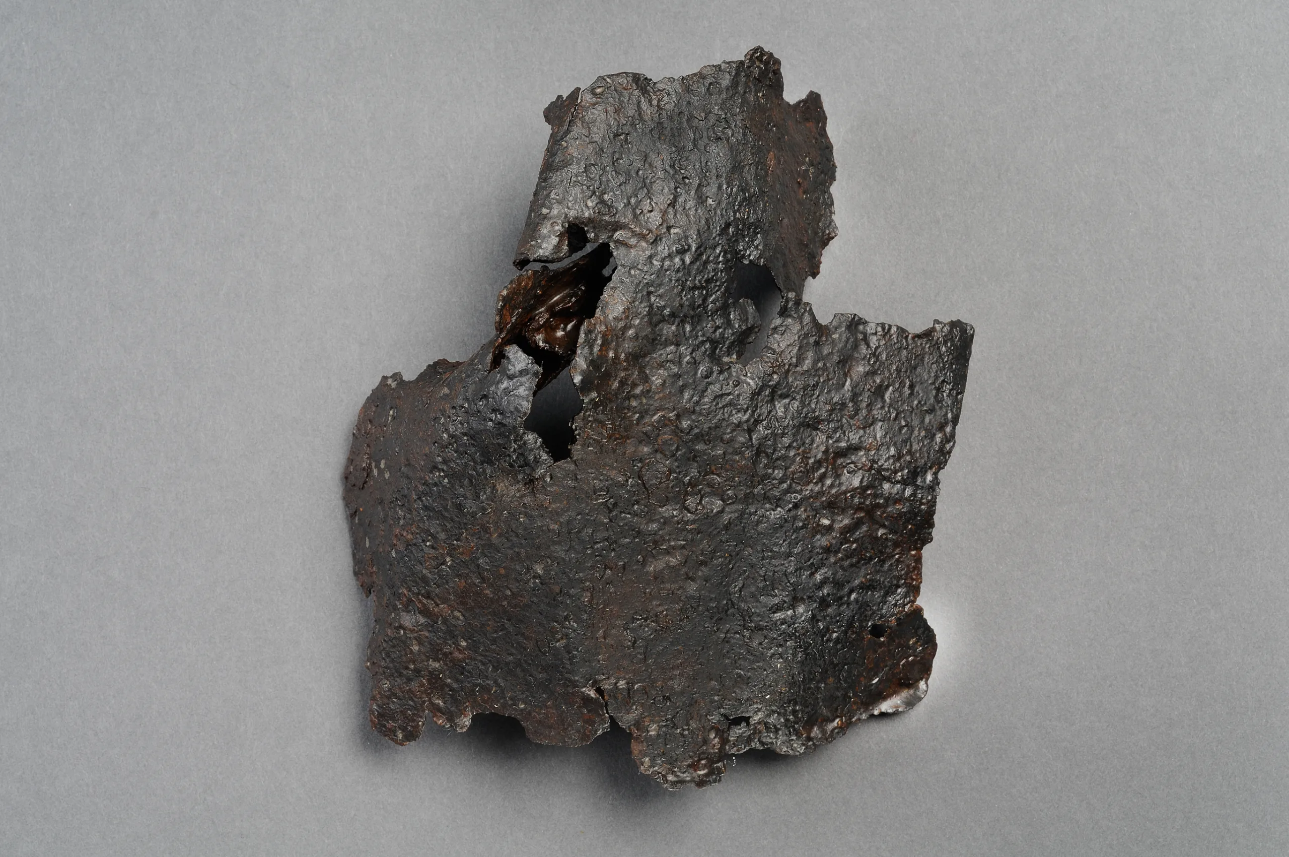Caption 11. Lamellar armour, iron From Mästerby parish, Gotland, 1300-1361 A. D. On loan from Gotlands Museum.