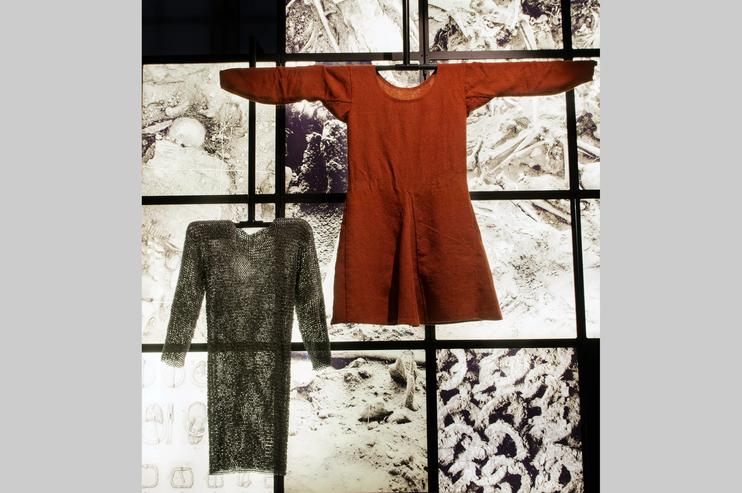 The reconstructed shirt does not match an original from the mass graves. It still provides a reasonable impression of what a chain-mail shirt from this period would have looked like. The fabric in the reconstructed tunic is not based on one specific object, rather on several textile fragments that were examined.