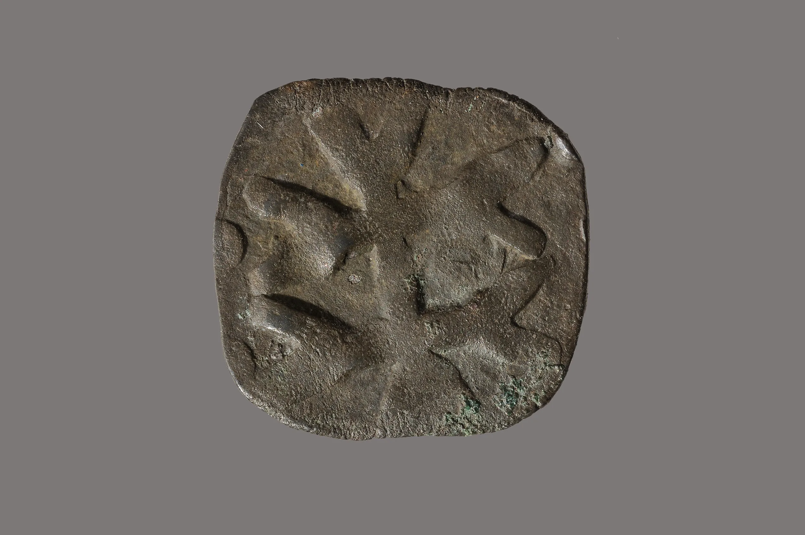 Från massgravarna, Korsbetningen, Visby socken, Gotland. Präglat i Lund. Ett patriarkalkors, ett kors med två par armar där det övre paret är kortare än den nedre, vars samtliga sex ändar är delade. Ytterst en kantkedja av kulor. Det fanns 126 tvåsidigt präglade mynt från Lund i läderpungen varav 125 är av denna typ. Det har diskuterats om mynttypen är präglad under Magnus Eriksson eller under Valdemar Atterdag. De flesta experter är nu eniga om att den tillhör Valdemars myntning. SHM 19325:Mz3
