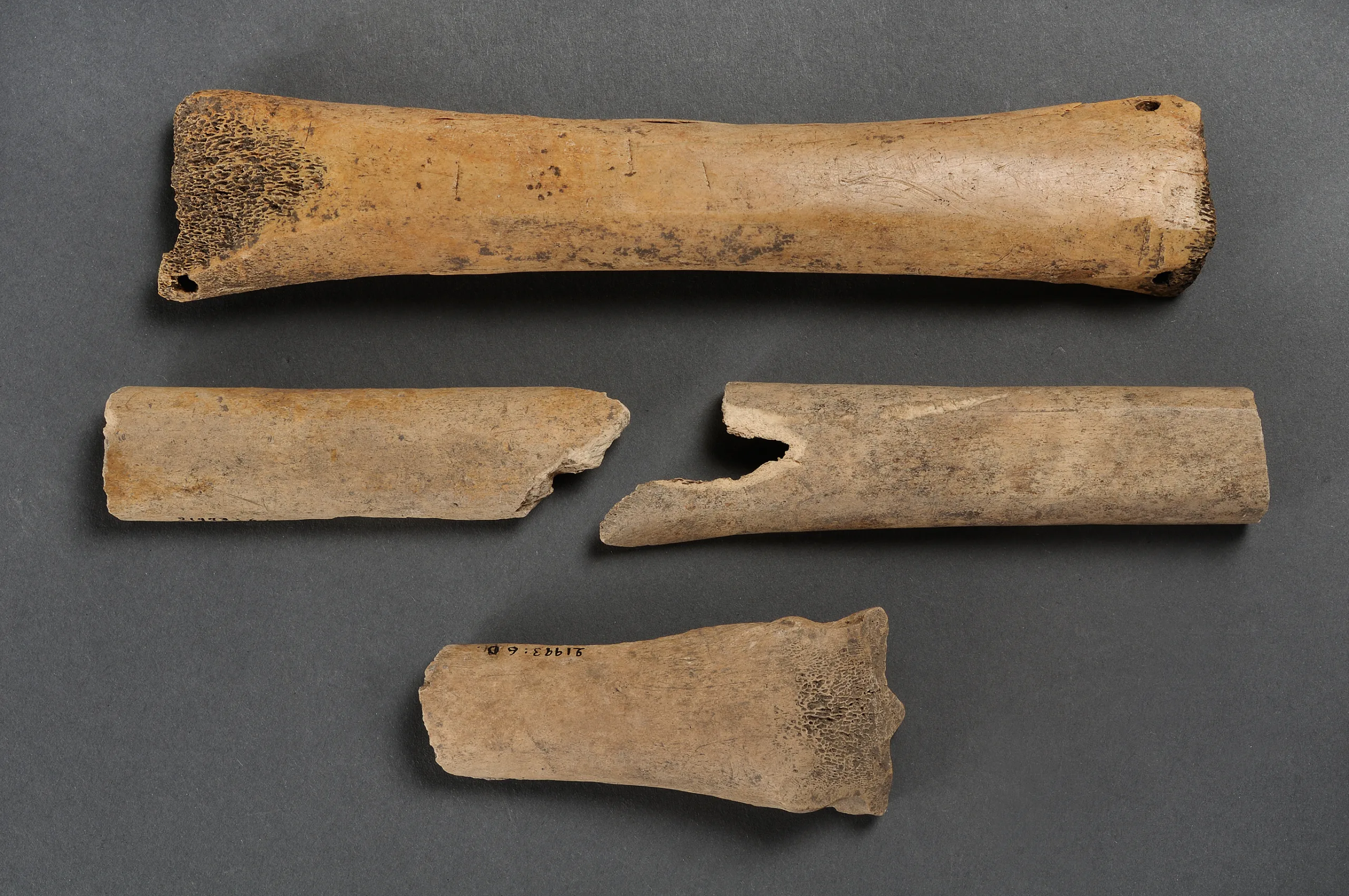 Från Stora Hellvigs, Fole socken, Gotland, 1300-1361 e. Kr. Isläggar, den tidens skridskor, var tillverkade av mellanfotsbenet från häst eller nötkreatur. Deras undersida var plan och polerad för att de skulle bli snabba. Genom att smörja undersidan med svinister minskades friktionen ännu mer och man kunde åka ännu fortare. Översidan kunde vara orörd eller avplanad, det viktiga var att man fick en bred yta att stå på. Ibland har isläggarna genomgående hål för fotremmar vid tå och häl, så att de kunde snöras fast. Men då åkaren inte lyfte fötterna, utan i stället använde en ispik som man sköt sig fram med, behövde isläggen egentligen inte knytas fast. SHM 21993:6A-D