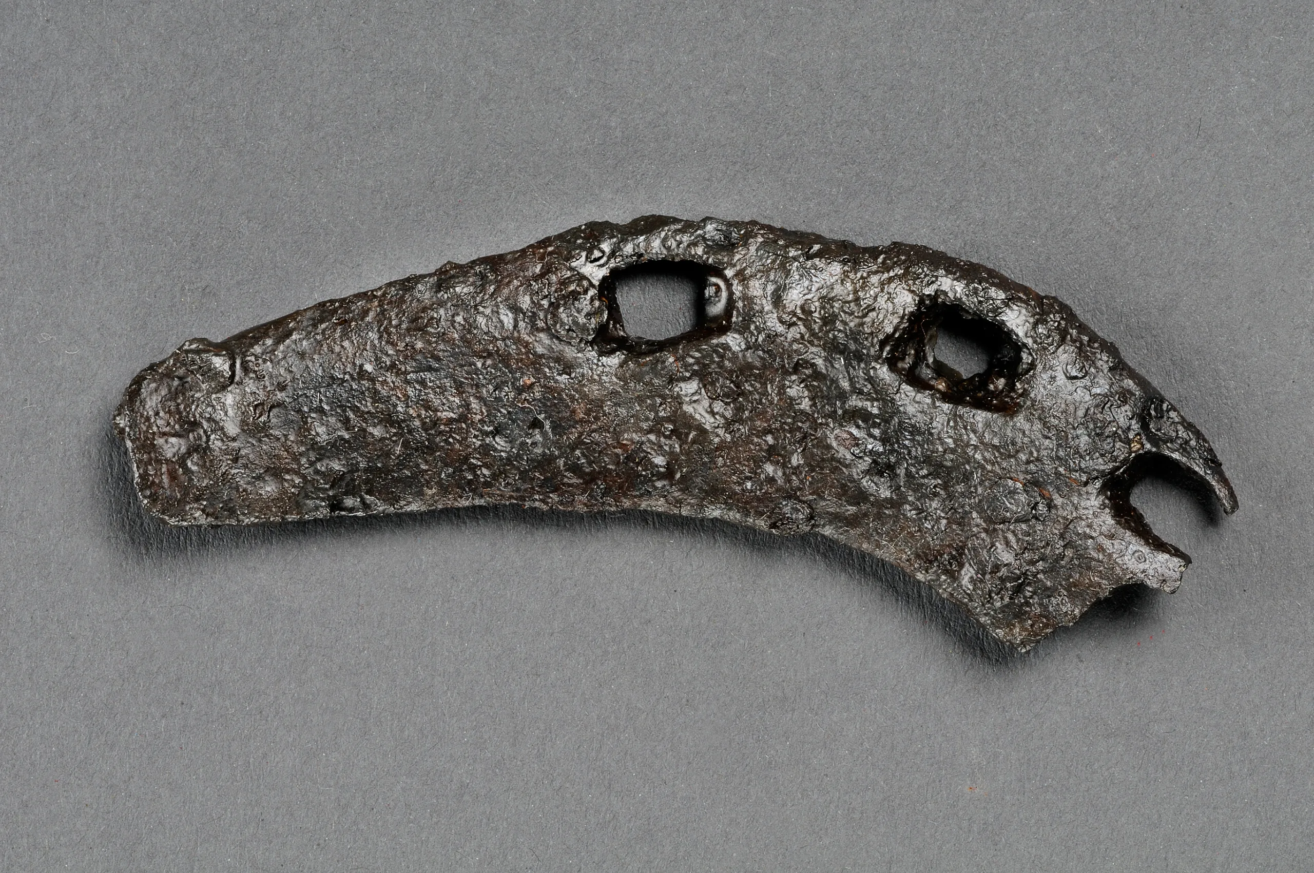 Bildtext 23. Hästsko, järn Från Stora Hellvigs, Fole socken, Gotland, 1300-1361 e. Kr. SHM 21993:104