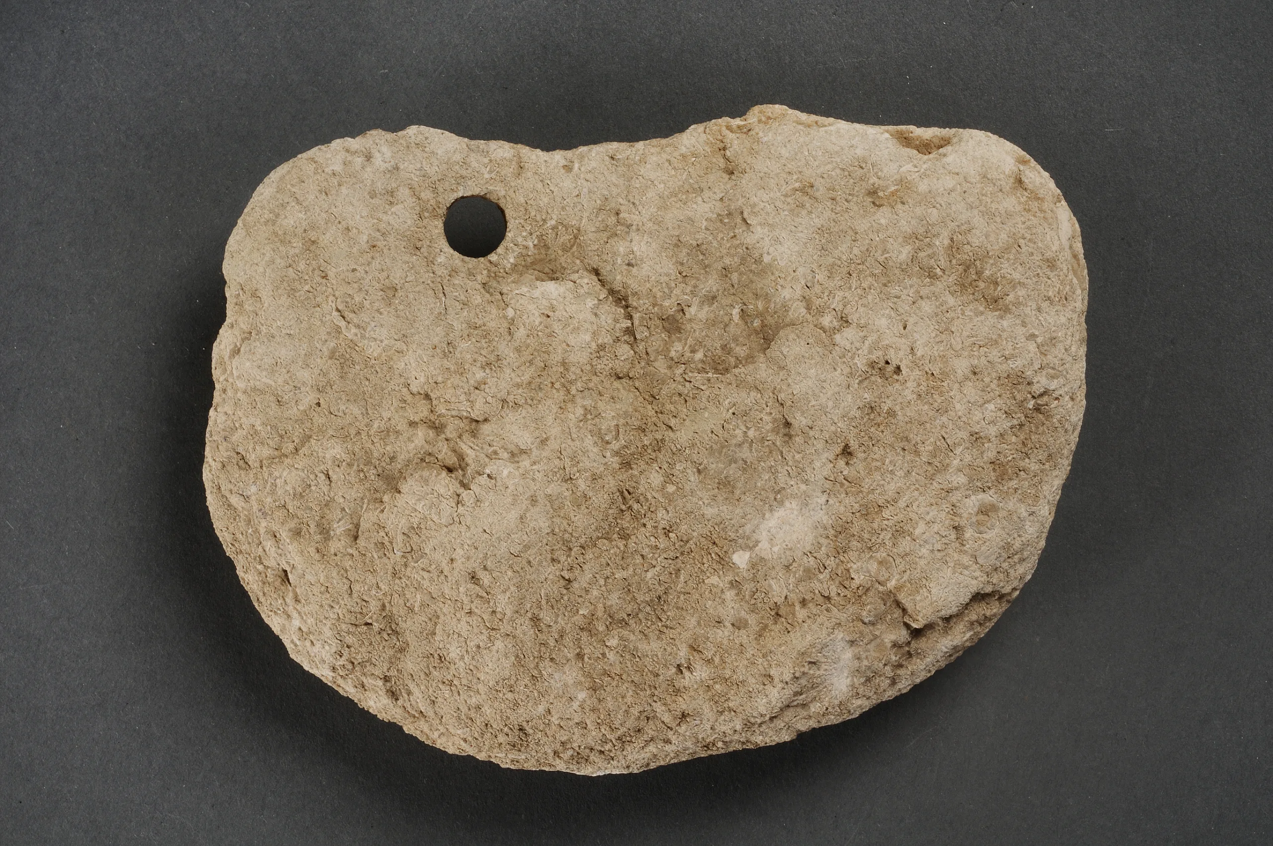 Caption 4. Sinker, stone From Stora Hellvigs, Fole parish, Gotland, 1300-1361 A. D. Stone sinker, perhaps for a fishing net. SHM 21993:28