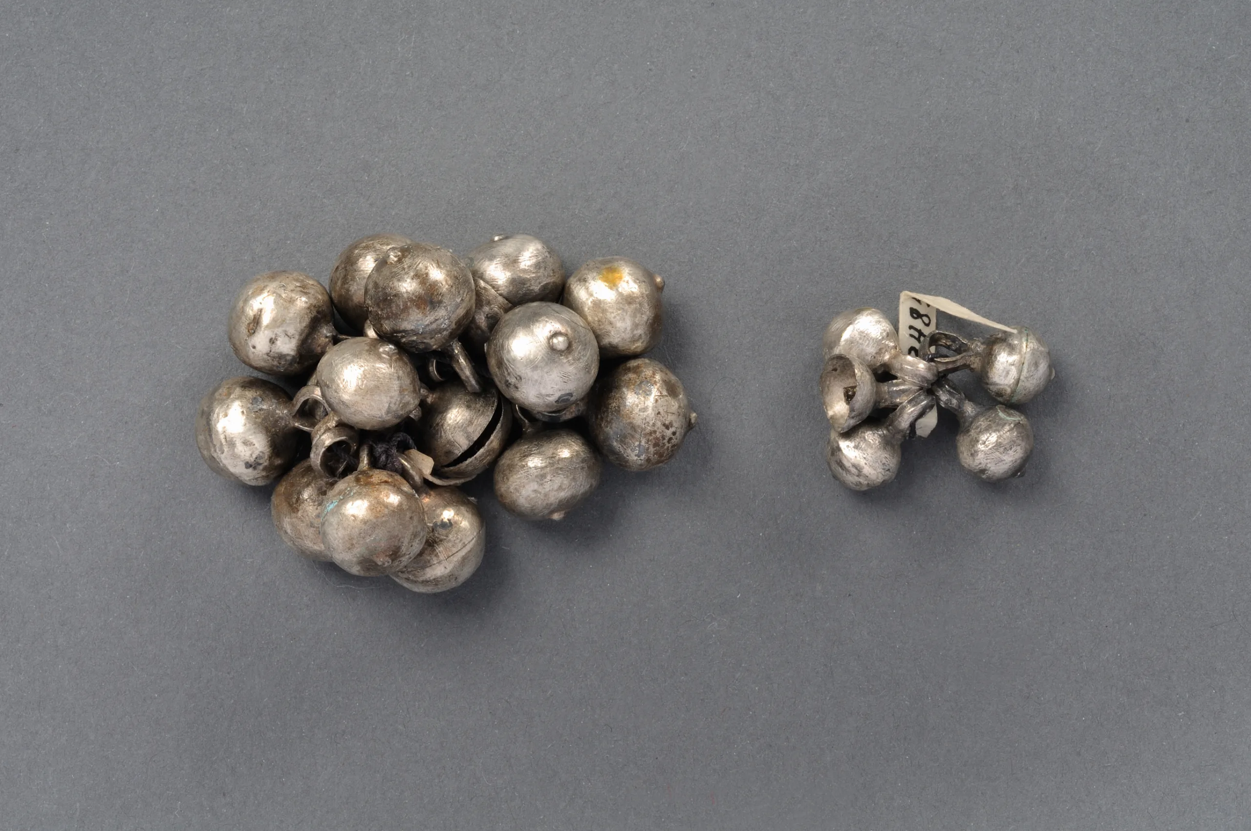 From Ammunde, Burs parish, Gotland, 1250-1361 A.D. Buttons and eyes were used to keep clothes fastened and closed (the zip was not invented until the 19th century). In the 14th century, when clothes were tight-fitting, buttons on sleeves and tunics were an important accessory. SHM 2485:30A-U