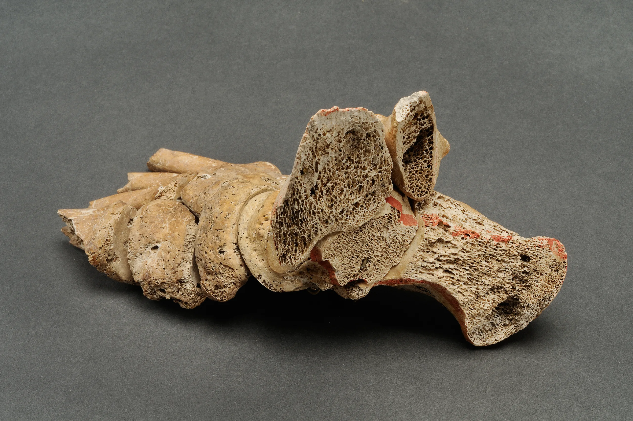 Bildtext E: Högerfot Foten har huggits av med ett kraftigt hugg rakt igenom vristen och hälen. SHM 18872
