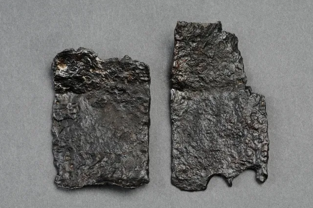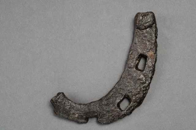 1. Svärd, järn 2. Hästsko, järn 3. Lamell till rustning, järn 4. Lameller till rustning, järn 5. Pilspets, järn 6. Pilspets, järn 7. Pilspets, järn 8. Doppsko till svärdsskida, järn 9. Sporre, järn 10. Lamell till rustning, järn